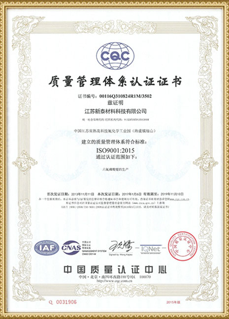 新泰材料具備六氟磷酸鋰及副產(chǎn)物鹽酸和氫氟酸的完全處置能力,這在國(guó)內(nèi)同行中是為數(shù)不多具備此能力的生產(chǎn)企業(yè)之一。公司最早依賴(lài)常熟三愛(ài)富的技術(shù)團(tuán)隊(duì)來(lái)開(kāi)發(fā)含氟的衍生產(chǎn)品,新泰六氟磷酸鋰的核心技術(shù)來(lái)源于企業(yè)自主研發(fā)。其核心技術(shù)及裝備包括“六氟磷酸鋰三相反應(yīng)法制備技術(shù)”、“六氟磷酸鋰結(jié)晶形式的優(yōu)化”、“六氟磷酸鋰高效率干燥技術(shù)與裝備”、“六氟磷酸鋰生產(chǎn)過(guò)程中混酸的后續(xù)處理”等。